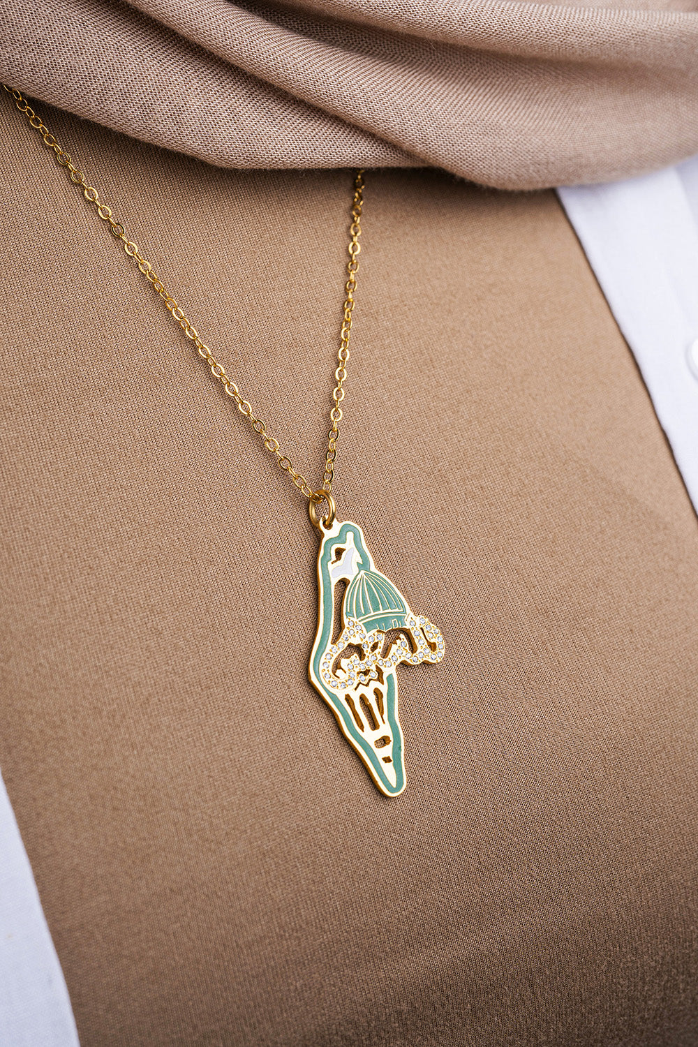 سلسلة ذهبية فاخرة تحمل تعليقة مميزة بشكل خريطة فلسطين. التصميم يجمع بين الأناقة والفخر الوطني، ليكون رمزًا دائمًا للتاريخ والانتماء. تفاصيل الخريطة الذهبية تضفي لمسة من الفخامة والرقي، مما يجعلها قطعة مجوهرات تعبر عن الحب العميق للوطن والهوية الفلسطينية. هذه السلسلة ليست مجرد إكسسوار، بل هي أيضًا رمز للعزة والانتماء، مما يجعلها هدية رائعة لكل من يحمل فلسطين في قلبه.