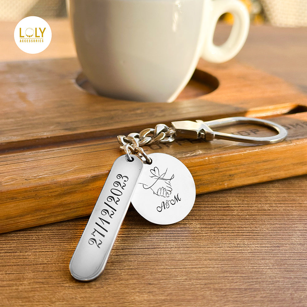 نقدم لكم ميدالية مكونة من قطعتين: دلاية حروف وكوين كبير. يمكنكم تخصيص الميدالية بكتابة أي اسم أو تاريخ مميز، بالإضافة إلى إمكانية كتابة أي جملة من اختياركم. تتوفر أيضاً خدمة الكتابة على الجانب الخلفي.