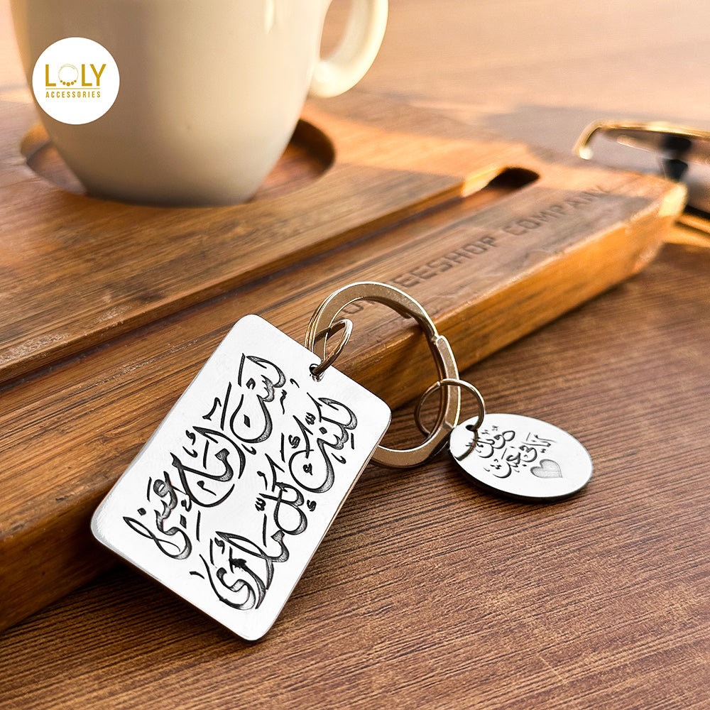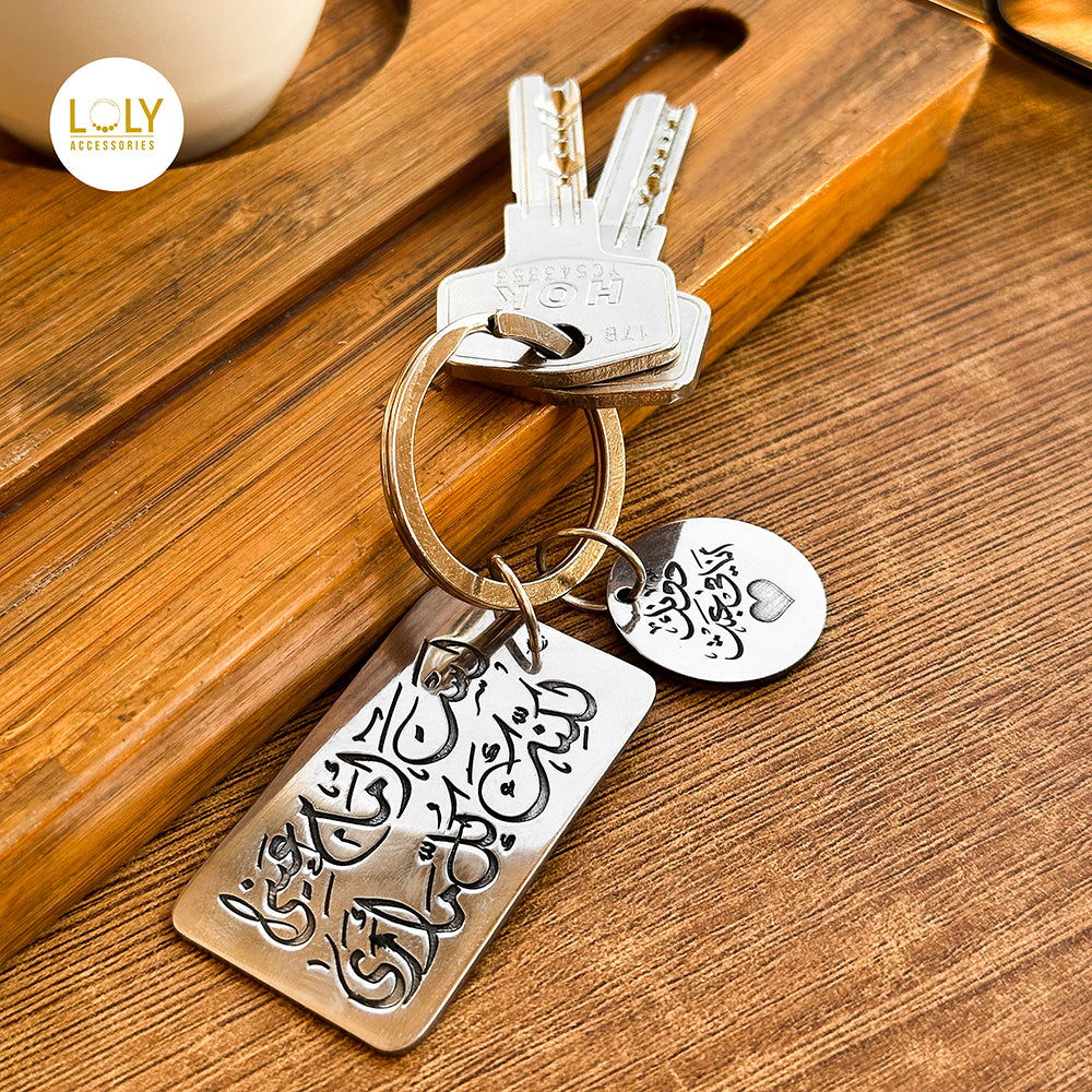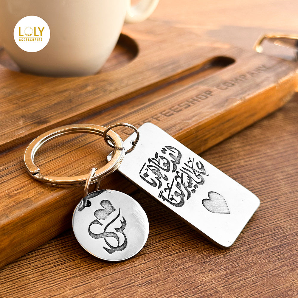 نقدم لكم ميدالية جديدة مكونة من قطعتين: مستطيل عريض ودائرة. يمكنكم تخصيص الميدالية بكتابة أي اسم أو جملة من اختياركم. تتوفر أيضاً إمكانية الكتابة على الجانب الخلفي.