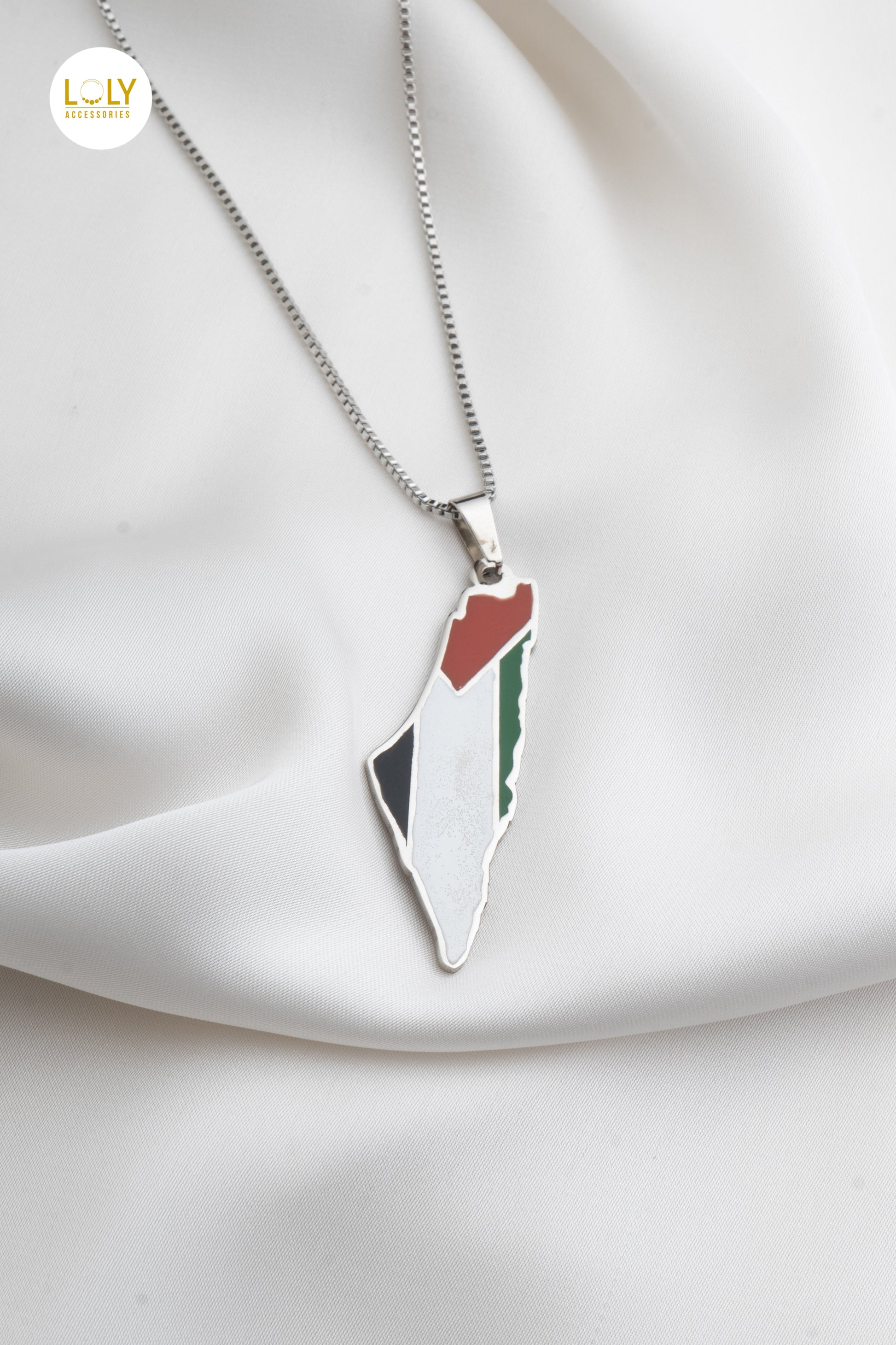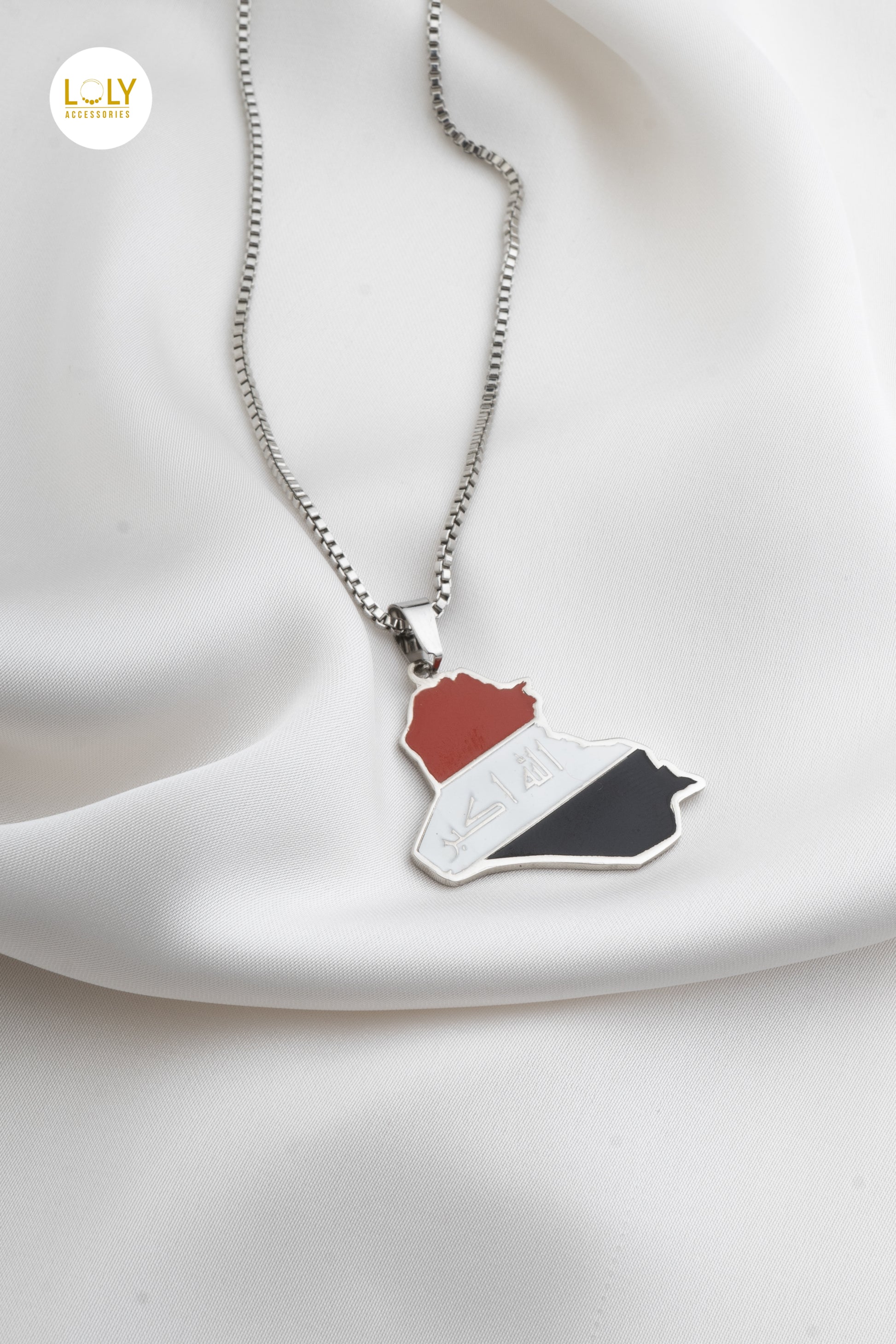 سلسلة فضية تحمل علم دولتك، متاحة بجميع الدول. تتميز السلسلة بلمعان فضي يضفي عليها أناقة فريدة، وتجعلها قطعة مميزة في أي إطلالة. سواء كنت تبحث عن قطعة مميزة تحمل علم دولتك أو دولة تحبها.